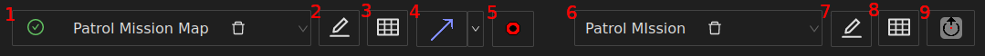 To create a new Mission first ensure that the UI is in "Mission Edit Mode" ( select the rightmost pencil icon in the bottom bar). Then open the drop down menu in the bottom bar and select the "Add Mission" option. This will allow the Operator to create a new Mission which can then be defined with Goalpoints.