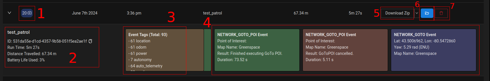 - Executed Logs: Logs that have executed on the UGV. These can be expanded to show high level information related to events that occurred during the recording.