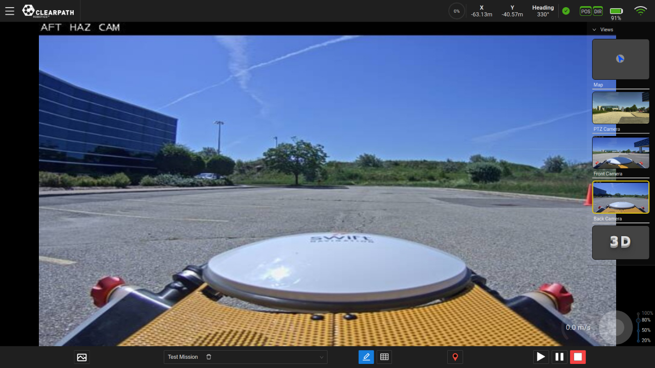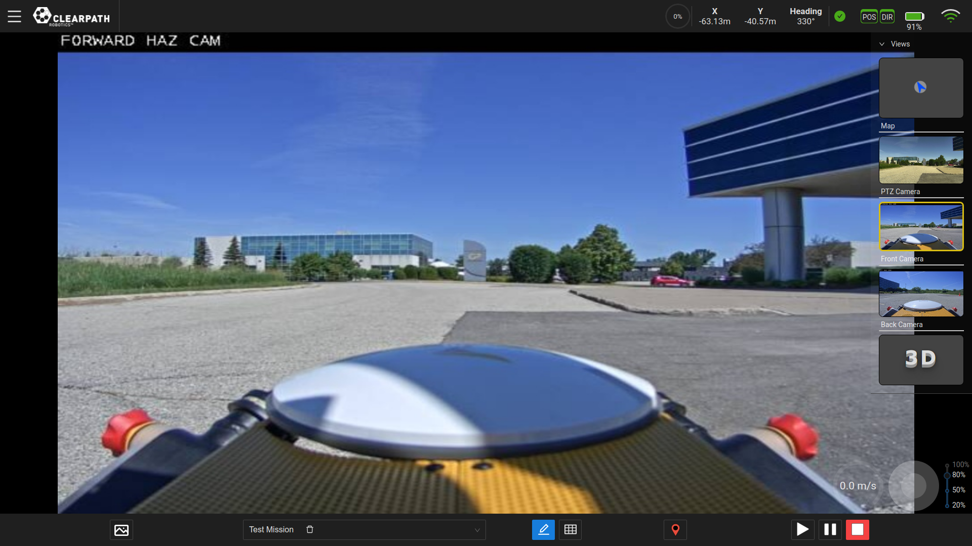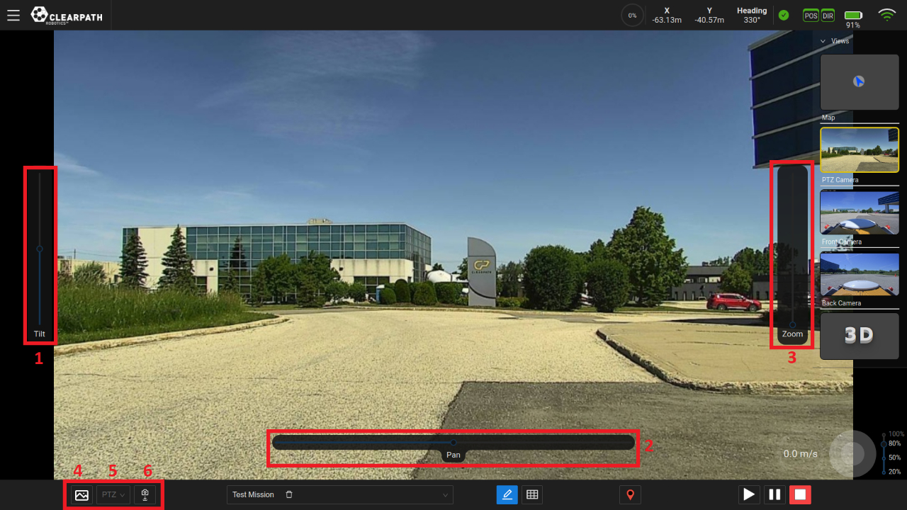 If PTZ and/or Front/Back camera(s) are included on the UGV, their feeds can be viewed through the UI and the PTZ can be controlled through the UI. If not, there will not be any PTZ, Front/Back view(s) in the list of available views.
