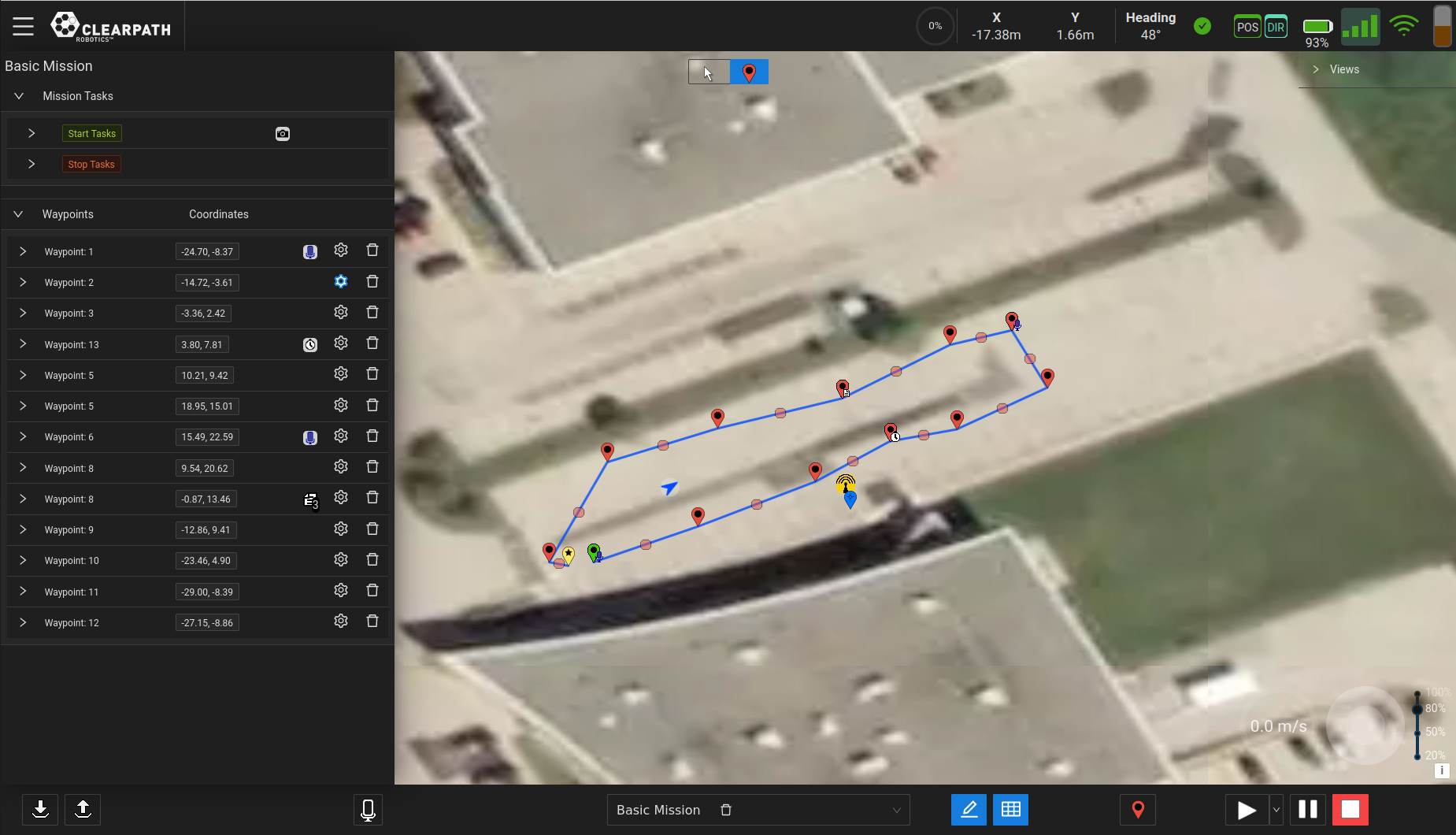 • Build missions containing sets of paths, with optional task execution on each path; tasks can be standard tasks (eg. save camera image) or user provided functions