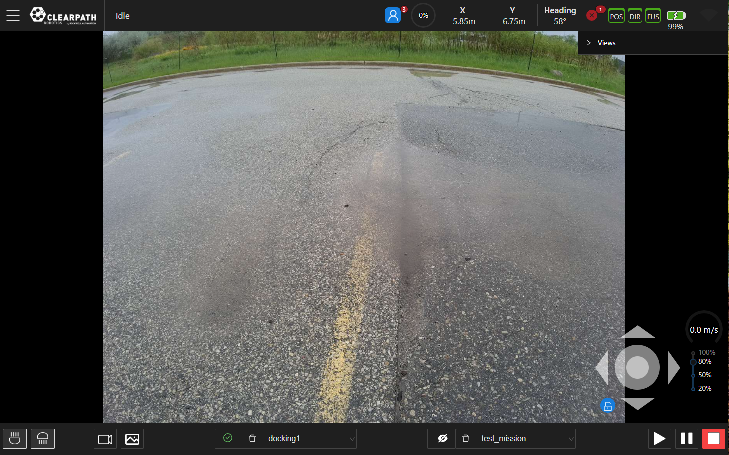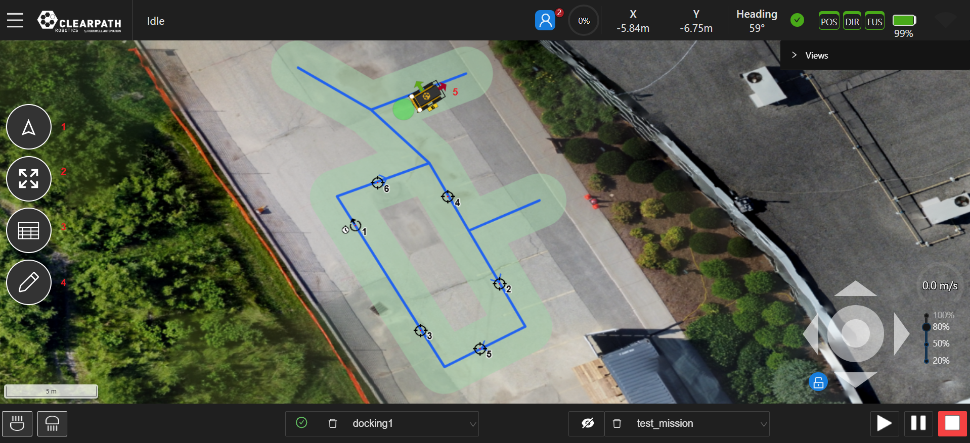 The Web User Interface (Web UI) provides an easy, graphical, means to control both manual and autonomous operation of your UGV. The following sections outline: the components and views of the UI, the details of operating in manual mode, and the details of operating in autonomous mode.
