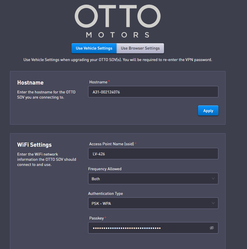 - Using the hostname or static IP set in the Wi-Fi setup above, load the OTTO App user interface by opening a web-browser, and going to the address http://hostname:5000.