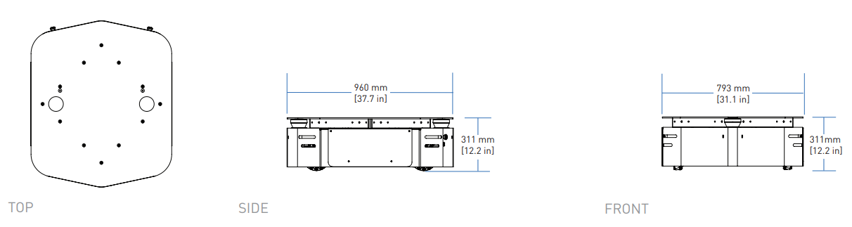 † The height of the Ridgeback was increased by 15 mm starting with the robot with serial number R100-0111. Older Ridgebacks measure 296 mm high.