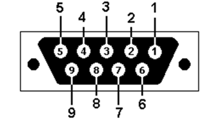 The pinout of the DE-9 connector is shown below.