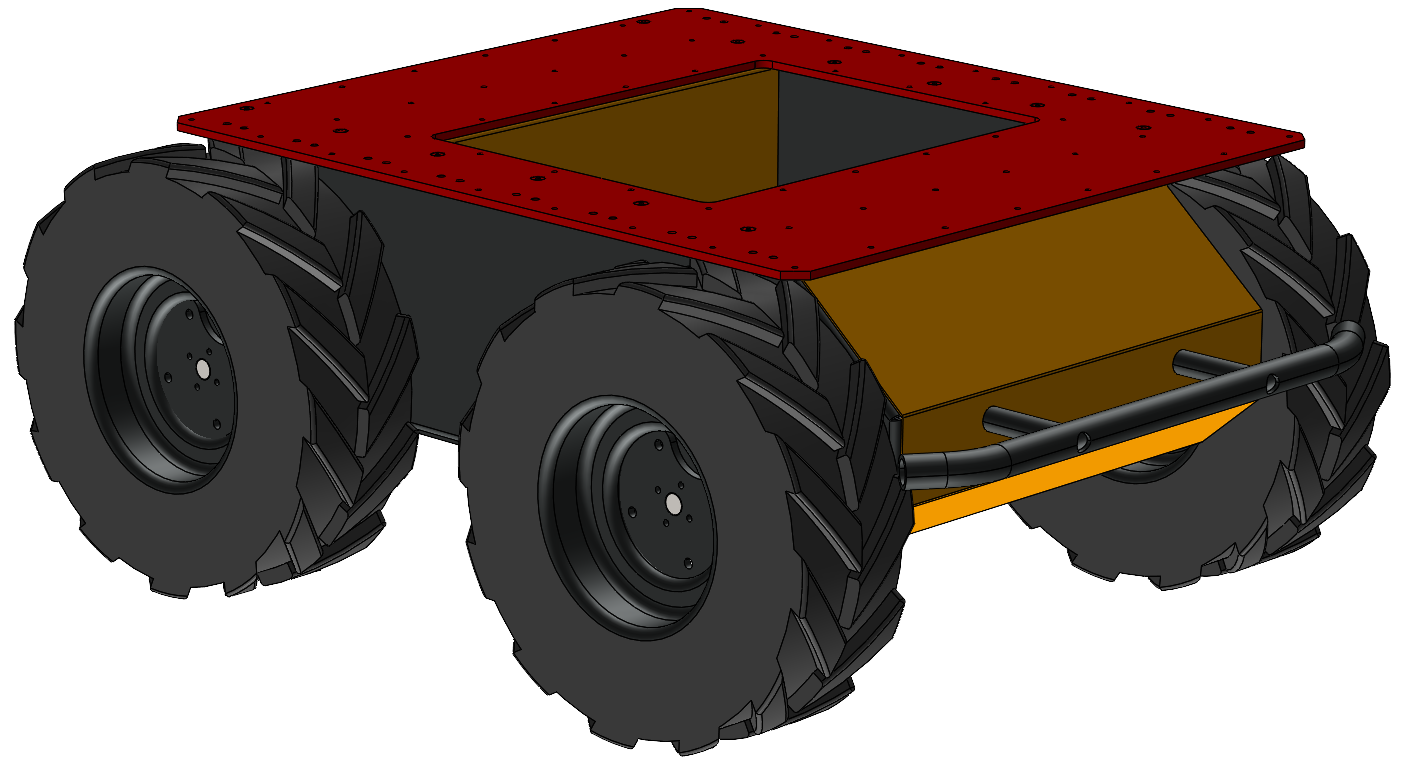 Place the asesmbly onto the Husky. The Husky's width may be larger than the assembly. It is easiest to start at the back of the Husky, and slowly rotate the assembly onto the Husky. You may need to loosen the 12 fastener connections from step 3 to get the assembly to fit onto the Husky.